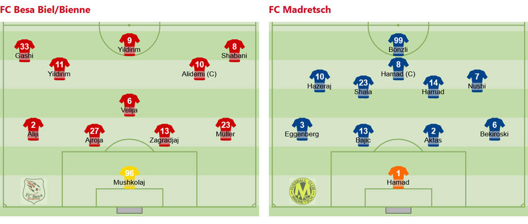 Madretsch: S. Hamad; Bekiroski, Aktas, Bajic, Eggenberg; G. Nushi (72. Bourabaa, 78. G. Nushi, 90.+4. Bönzli), Hazeraj, A. Hamad, Shala; M. Hamad (83. Turan), Bönzli (89. M. Hamad).
