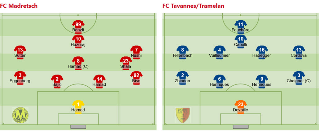 Madretsch: S. Hamad; Bise (83. Sutter), A. Hamad, Bajic, Eggenberg; Shala (68. Turan), M. Hamad, G. Nushi, Sutter (33. Bu. Nushi); Hazeraj, Bönzli.